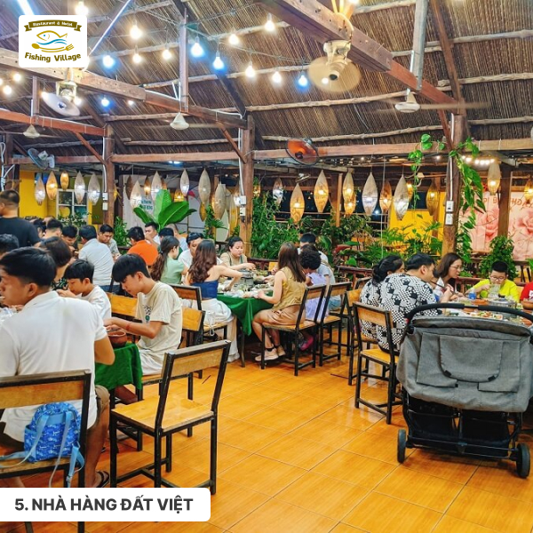 Nhà hàng Đất Việt nằm trên đường Nguyễn Đình Chiểu, là một nhà hàng lẩu thả Mũi Né chuyên phục vụ các món ăn đặc sản miền Trung. Nhà hàng có không gian rộng rãi, thoáng mát, được trang trí theo phong cách dân dã, mộc mạc. Menu lẩu thả của nhà hàng rất đa dạng, với nhiều loại hải sản tươi ngon, được chế biến theo nhiều cách khác nhau.