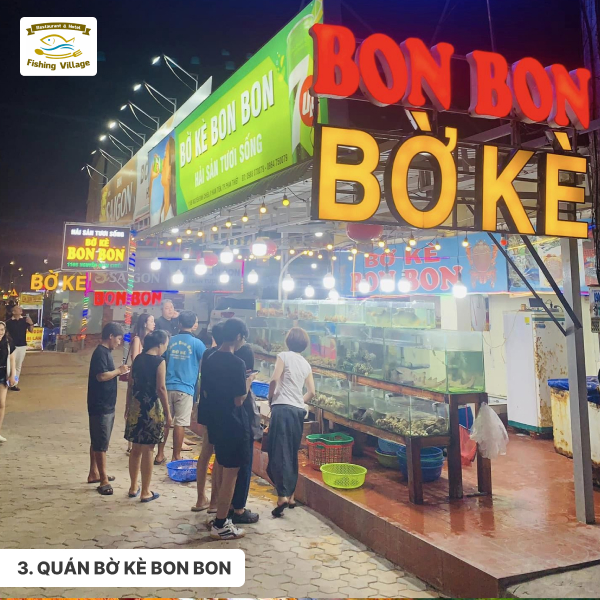 Quán Bờ Kè Bon Bon cũng là một địa chỉ ăn hải sản ngon ở Mũi Né. Quán nằm ngay cạnh bờ kè sông Cà Ty, có không gian rộng rãi, thoáng mát.