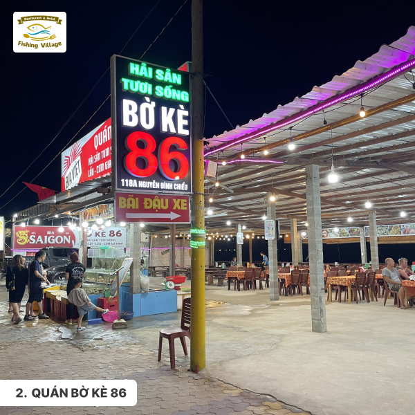 Quán Bờ Kè 86 là một trong những quán hải sản nổi tiếng nhất Mũi Né. Quán nằm ngay cạnh bờ kè sông Cà Ty, có không gian thoáng mát, rộng rãi.